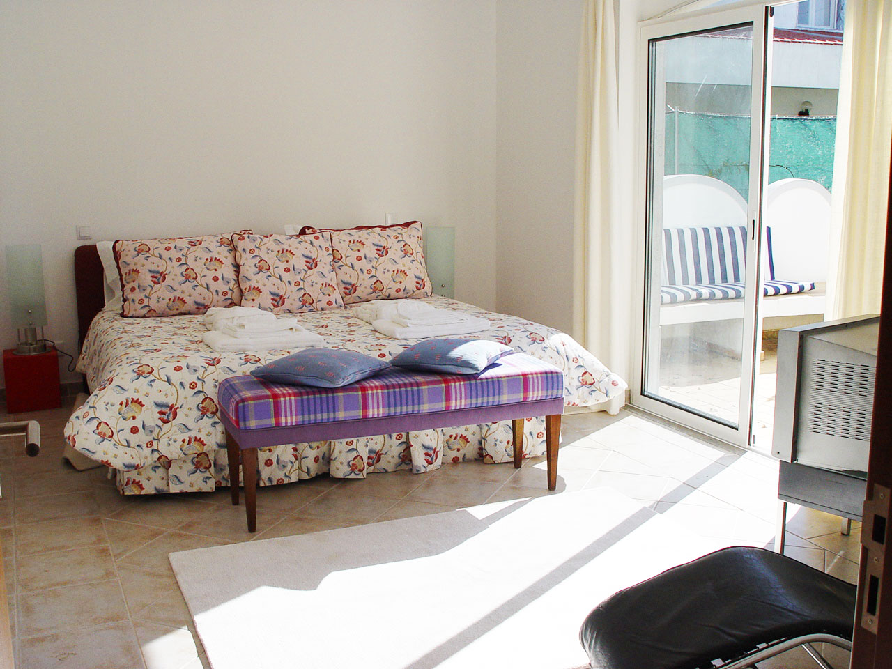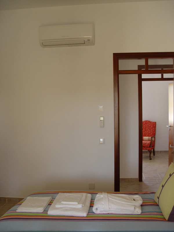 There are patio doors to the pool’s area and garden. The pool, which has generous dimensions, is hidden from the glaze of neighbours, and is located next to a lawn area, where the children can play. The barbecue area is covered and has a wash basin, to allow you to make your favourite delights at the outdoor, with your friends or family. And the villa has a private parking place for three or four cars. There are games for the youngest and entertainment for the adults, such as DVDs players, surround stereo system and English, French and German channels. This villa benefits from air-conditioning throughout, which is included in the cost. It has internet wi-fi with a good bandwidth. And the two main suites have comfy king size beds! It is a one floor only villa, perfect for people with reduced mobility.